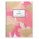 Feminine and trendy custom notebook featuring a pink brush pattern with gold glitter accents. Personalize by adding your name or short phrase. This modern abstract notebook will be perfect as a personalized gift. Matching items are available.
