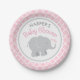 Modern Pink and Grey Elephant Girl Baby Shower Paper Plate