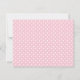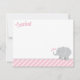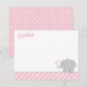 Sweet and whimsical baby shower thank you notes feature "Thanks!" text and an adorable newborn baby elephant calf with heart shaped splashes, with space for your handwritten message. The design includes a border pattern of diagonal stripes, polka dots on the back, and a baby girl colour scheme of light pink, grey, and white.