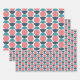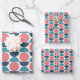 This bold gift wrap features modern pink and teal geometric circle and half circle shapes on a white background.