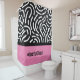 Decorate your dorm room with this fun shower curtain that features a modern pink and black abstract pattern with personalized hashtag text and a customizable colour palette. This bold design will make a fun addition to a dorm bathroom. To modify the text and colour scheme, click “Personalize,” modify the hashtag text, click “Edit Using Design Tool,” click to select the pink elements, click “Fill Colour,” select desired colour, then click “Done.” If you need help changing the colour, contact Zazzle Support at https://help.zazzle.com