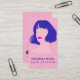 The card features a flat design illustration of a stylish woman with medium length, wavy indigo blue hair, defined lime green brows, and pink lips — a bold yet elegant combination that captures attention instantly. The clean lines, edgy, retro-boho vibe, and modern color palette create a distinctive look that perfectly fits the beauty and fashion world.