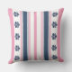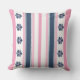 Modern Pink Blue Stripes and Floral Throw Pillow