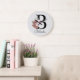 Modern pink Boho initial clock, perfect gift for Christmas, birthday or other fun celebration. Customized with boho flowers, monogrammed the letter B and a name.