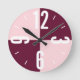 Horloge Ronde Modern pink, burgundy color blocs large numbers