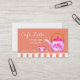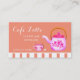 A cute modern style business card coffee loyalty card suitable for a café - either mobile café or coffee or tea shop. This whimsical design shows an illustration of a cute simple art outline of a tea cup modern style against a pink background. The background colour can be changed to suit your taste. This business card is fully customisable to include your own personal details. Loyalty Card suitable for a cafe