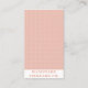 Business card design with a pink chequered pattern and a clean, minimal layout, featuring a QR code for direct access to a website or portfolio. Suitable for handmade clothing businesses, boutique brands, or creative professionals.