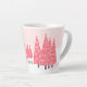 This Christmas patterned latte mug can be personalized with your monogram or name. Modern abstract style cluster of pink and white Christmas trees spattered with snow on a pink monochromatic background. Available in two sizes and is a cute twist for the holiday eggnog or coffee.