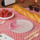 Modern birthday cocktail paper plates featuring minimalist design in pink colour