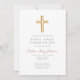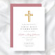 Editable Modern Pink Cross Religious Girl First Communion Invitation Template Card.