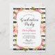 Modern Pink Floral Black Stripes Graduation Party Invitation