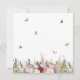 Feminine and elegant, this square save the date announcement features a lovely design of watercolor pink and purple flowers including roses, tulips, lavender and eucalyptus greenery with bright coloured butterflies and bumble bees flying around.