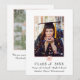 A modern, Pink Rose floral graduation announcement featuring a white and Black frame over your choice of photo. The backside features another photo and more details about your graduate.