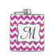 Modern Pink Glitter Chevron Monogram Whiskey Flask