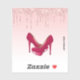 A modern, trendy design on a vinyl decal. The background has an image of sparkling pink glitter drips, along the top. The rest of the background is a delicate pastel pink colour gradient. A pair of high heel pink stilettos add a stylish fashionable vibe.
