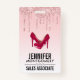 A modern, trendy design on a name tag. The background has an image of sparkling pink glitter drips, along the top. The rest of the background is a delicate pastel pink colour gradient. A pair of high heel pink stilettos add a stylish fashionable vibe. A fancy classy divider line separates your name and profession.