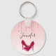 A modern, trendy keychain. The background has an image of sparkling pink glitter drips, along the top. The rest of the background is a delicate pastel pink colour gradient. A pair of high heel pink stilettos add a stylish fashionable vibe.