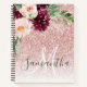 Modern Pink Glitter & Flower Sparkle With Name Notebook