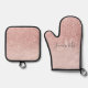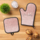 Modern Pink Glitter Sparkles Personalized Name Oven Mitt & Pot Holder Set