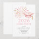Celebrate your 2026 graduate with this pink and gold graduation party invitation featuring a blush grad cap, gold tassel and sparkling fireworks. A modern, elegant design perfect for a stylish high school or college grad celebration.