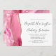 The left-hand edge of this elegant modern wedding invitation features a pink watercolor agate border trimmed with faux gold glitter. The customizable text combines handwriting, copperplate and italic fonts in charcoal grey on a white background. The reverse side features a matching pink and gold agate design.