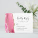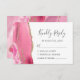 The left-hand edge of this elegant modern wedding RSVP enclosure card features a pink watercolor agate border trimmed with faux gold glitter. The title "Kindly Reply" appears in handwriting script, with customizable text below in charcoal grey copperplate font on a white background. The reverse side features a matching pink and gold agate design.