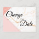 Modern Pink Gold Glitter Marble Change the Date Postcard