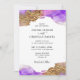 The Modern Pink Gold Purple Ink Wedding Invitation is a luxurious, eye-catching choice for contemporary weddings. This invitation combines a blend of soft pink, deep purple, and metallic gold ink accents, with artistic ink splashes that create a sophisticated yet creative aesthetic. The colour palette offers a striking contrast, highlighting elegant typography and leaving a lasting impression. Ideal for a modern or upscale wedding theme, this invitation is designed to captivate guests with its bold, artistic style and rich colours. Perfect for couples looking to add a touch of glamour and modern flair to their wedding stationery. The size is 5 x 7 inch.