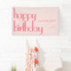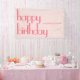Modern pink happy birthday banner sign featuring elegant chic typography and minimalist design in pink colour.