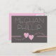Pink Hearts over grey modern save the date postcard that you can customize with your own names, date and text.