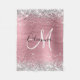 Modern Pink Ombre Foil Silver Glitter Monogram Fleece Blanket