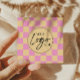 Modern Pink Orange Chequered Custom Company Logo Square Business Card