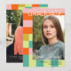 Announce the graduation of your daughter with this trendy color blocks graduation announcement card personalized with two photos of your daughter, one on each side. The background has modern color blocks and stripes in soft pink, strong orange, teal, and chartreuse.