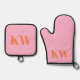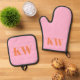 Modern Pink Orange Monogram Initials Personalized Oven Mitt & Pot Holder Set