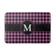 Modern Pink Plaid Checks Pattern Monogram Bath Mat