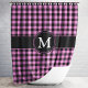 Modern Pink Plaid Monogram Shower Curtain.