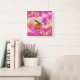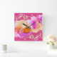 Modern Pink Purple Orange Gold Alcohol Ink Swirls Square Wall Clock