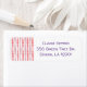 These return address labels have a mid-century modern design of pink and lavender rounded rectangles in increasing and decreasing size running vertically on a field of white.