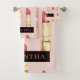 Modern Pink & Red Lipstick Pattern Girly With Name Bath Towel Set