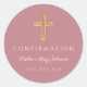 Modern Pink Religious Cross Girl Confirmation Classic Round Sticker