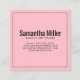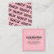 Modern pink repeating text pattern makeup square business card