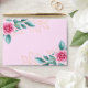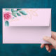 Modern and elegant pink rose and green and gold foliage wedding invitation envelopes. Easily customize with your own mailing addresses for your own special day.