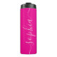 Stand out with this bright and bold pink Thermal Tumbler accented by a delicate white script font. Designed for those who love vibrant colors, this Thermal Tumbler is fully personalizable for a truly custom-made feel. This high-quality Thermal Tumbler ensures your beverages stay hot or cold for hours, making it a perfect gift for students or busy professionals. Add your name to this chic Thermal Tumbler and enjoy a functional piece that reflects your personality