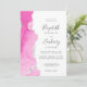 The left-hand edge of this elegant modern wedding invitation features a pink watercolor agate border trimmed with faux silver foil. The customizable text combines handwriting, copperplate and italic fonts in charcoal grey on a white background. The reverse side provides space for wedding details on a solid white background, along with a QR code guests can scan to visit your website and RSVP, which saves the cost of printing and mailing separate RSVP cards.