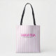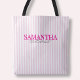 Modern Pink Striped Script Personalized Bridesmaid Tote Bag