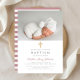 Modern Pink Stripes Religious Cross Photo Baptism Invitation