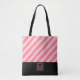 Modern Pink Stripes with Elegant Monogram Tote Bag