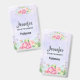 Name badge with a pretty watercolor design. Pink flowers arranged in a beautiful bouquet.