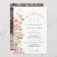 Pretty floral wedding invitation featuring subtle pinks and white flower and foliage on the side and the couples photo on the back. This delicate pastel floral wedding invitation is deal for a couple looking for spring rustic floral wedding invitation in warm tones with a hint of gray green. The couples photo appears on the back.