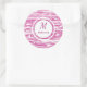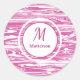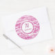 Modern Pink White Pattern Monogram Custom Classic Round Sticker